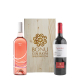 Cassetta di legno con due vini: