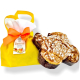 INGREDIENTI: farina di frumento, burro (latte), zucchero, glassatura con mandorle ( zucchero, farina riso, mandorle, farina di mandorle, farina di frumento maltata), tuorlo d’uovo, lievito naturale (farina di frumento, acqua), cubetti di pesca 5% (pesca, sciroppo di glucosio-fruttosio, saccarosio, acidificante: acido citrico; conservante: potassio sorbato), cubetti di albicocca 5% (albicocca, sciroppo di glucosio-fruttosio, saccarosio, acidificante: acido citrico; conservante: potassio sorbato), cioccolato bianco 5% ( zucchero, burro di cacao, latte intero in polvere, zucchero del latte, emulsionante: lecitina di soia; aroma naturale di vaniglia), latte in polvere, pasta arancia ( sciroppo di glucosio-fruttosio, scorze di arancia, saccarosio, succo di limone concentrato, aroma naturale di arancia), emulsionanti (mono e digliceridi degli acidi grassi), miele, malto (grano), sale, estratto naturale di vaniglia Bourbon 0,25% , burro di cacao, zucchero impalpabile (saccarosio, amido di mais), aromi. Può contenere tracce di pistacchi, noci e nocciole.