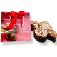 INGREDIENTI:farina di frumento, glassatura con mandorle 18%: zucchero, grasso vegetale (cocco), amido di frumento,farina di riso, albume d’uovo in polvere, aromi. Mandorle (1,5%)), burro 16% (latte), gocce di cioccolato fondente (16%), amarene candite 11% (amarene, zucchero, sciroppo di glucosio, acidificante: acido citrico, succo di amarena concentrato, colorante: Antociani, aromi), zucchero, lievito naturale (farina di frumento, acqua), tuorlo d’uovo (7%), latte in polvere, miele, sale, burro di cacao, emulsionanti (mono e di gliceridi degli acidi grassi), estratto di malto (grano), aromi.